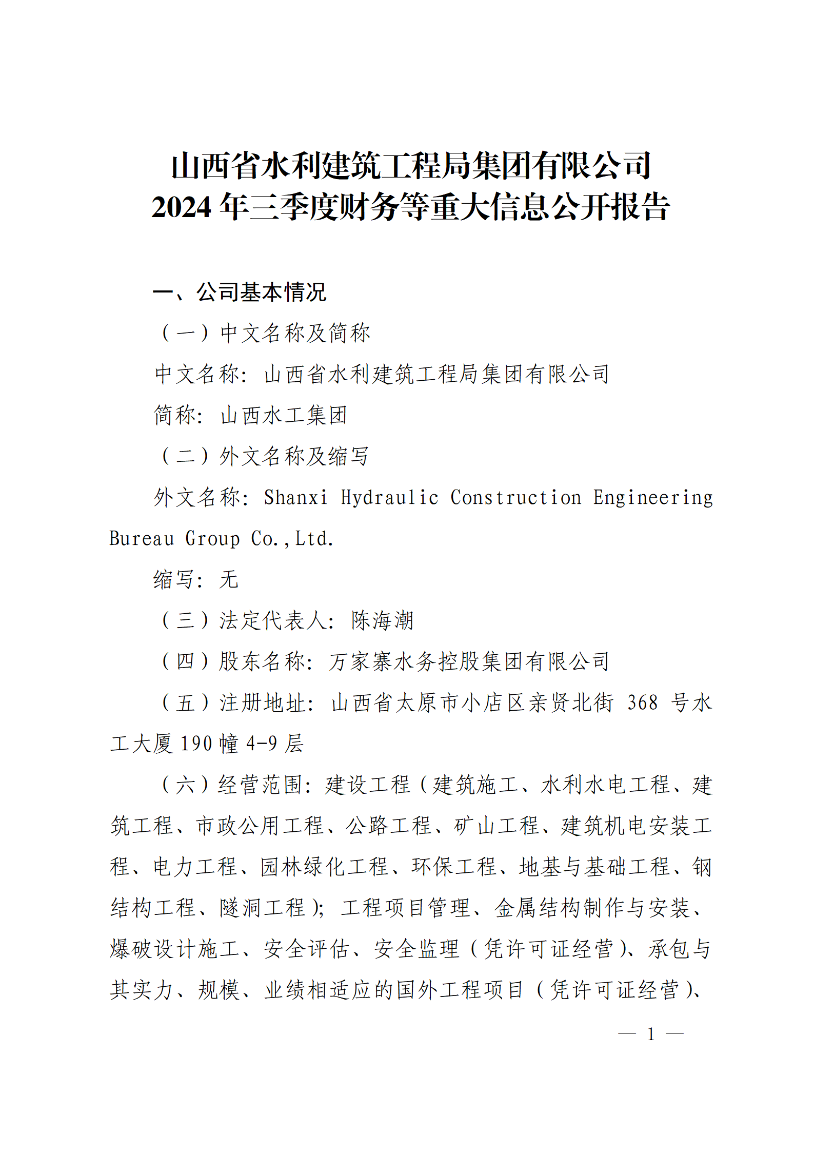 山西汾河一壩管理有限公司2024年第三季度財務(wù)等重...
