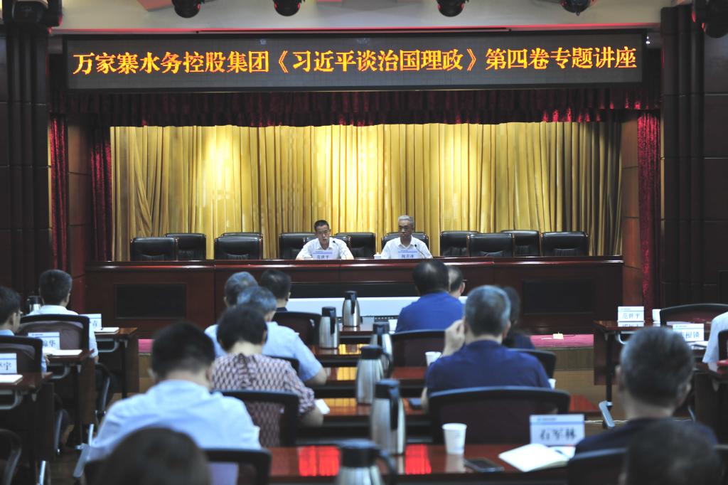 8月1日,萬家寨水控集團黨委召開黨委理論學習中心組(擴大)學習會,特邀山西大學原黨委副書記、二級教授、博士生導師鮑善冰作《習近平談治國理政》第四卷專題輔導講座。集團公司黨委班子成員馮志君、蘭康杰、范世平、彭柏青,總會計師曹志剛,副總工程師,集團公司中層以上領導干部,各單位領導班子成員,以及集團全系統黨員群眾、統戰對象、復轉軍人和團員青年等代表參加。集團公司黨委專職副書記、副董事長范世平主持會議。