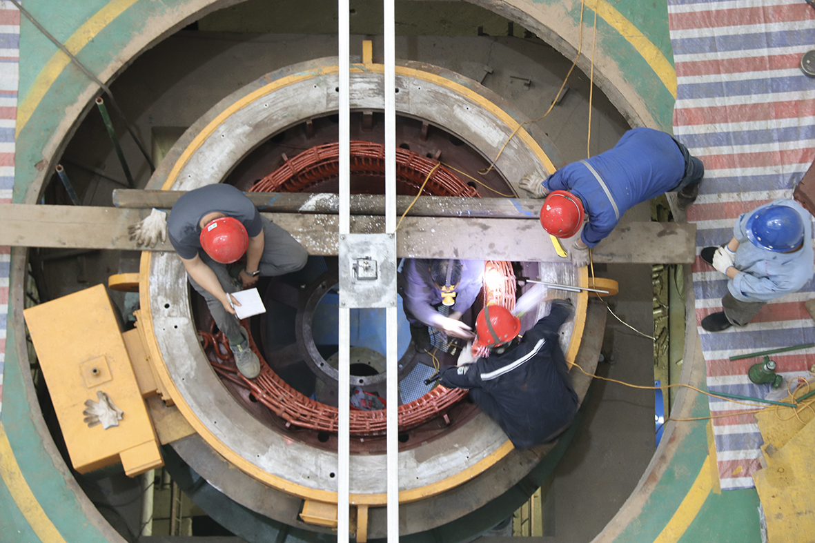 ▲開機前,禹門口樞紐一級站泵站檢修