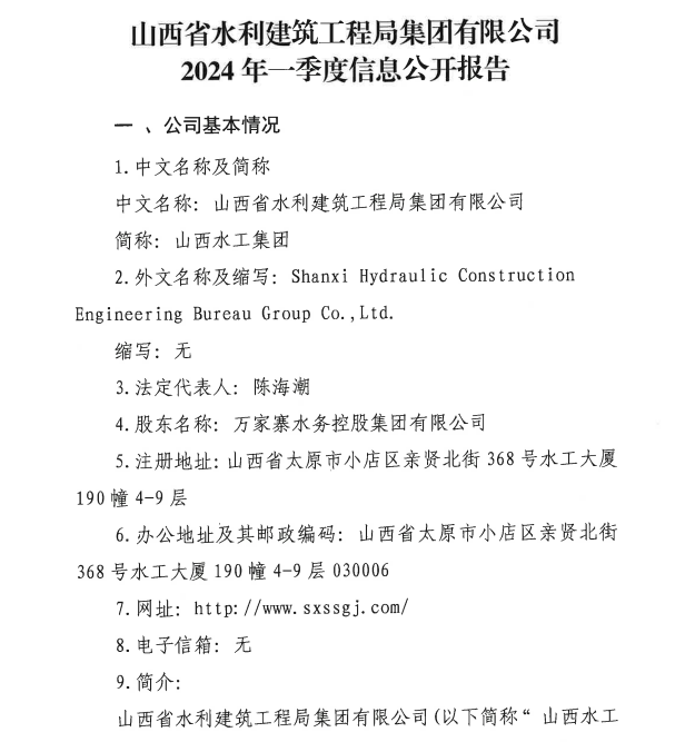 山西沁河水務(wù)集團(tuán)有限公司2024年第一季度信息公開...