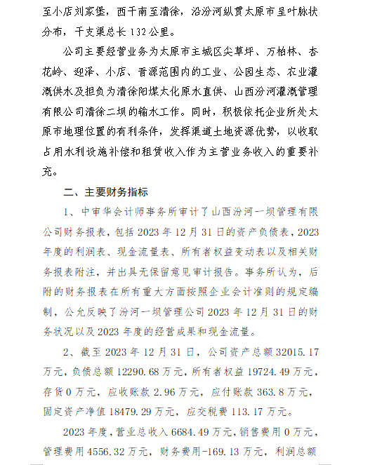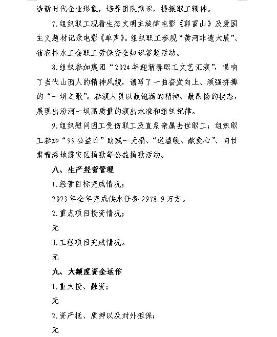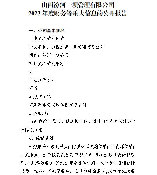 山西漳河水務集團有限公司2024年第一季度信息公開...