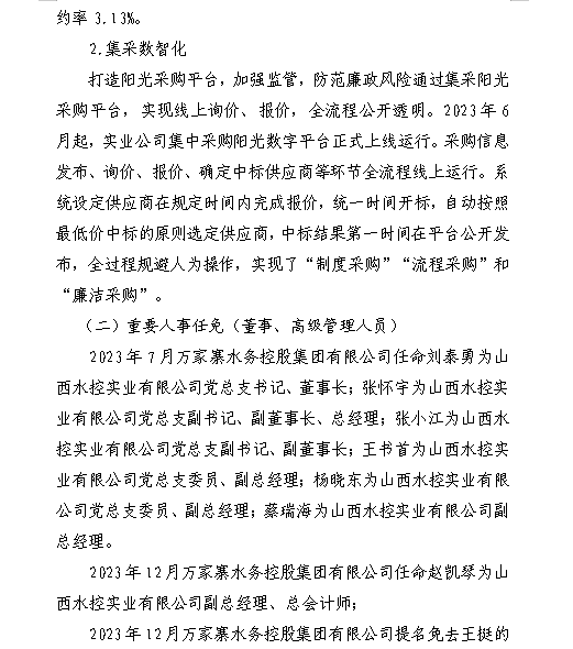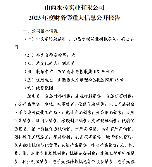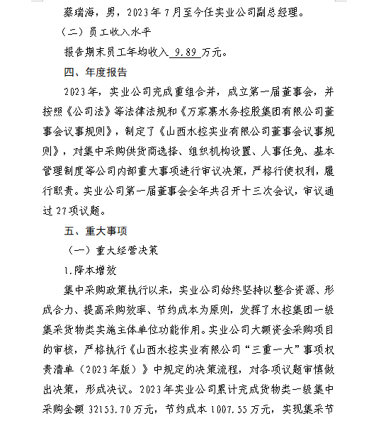 山西汾河二庫管理有限公司2023年度財務等重大信息...