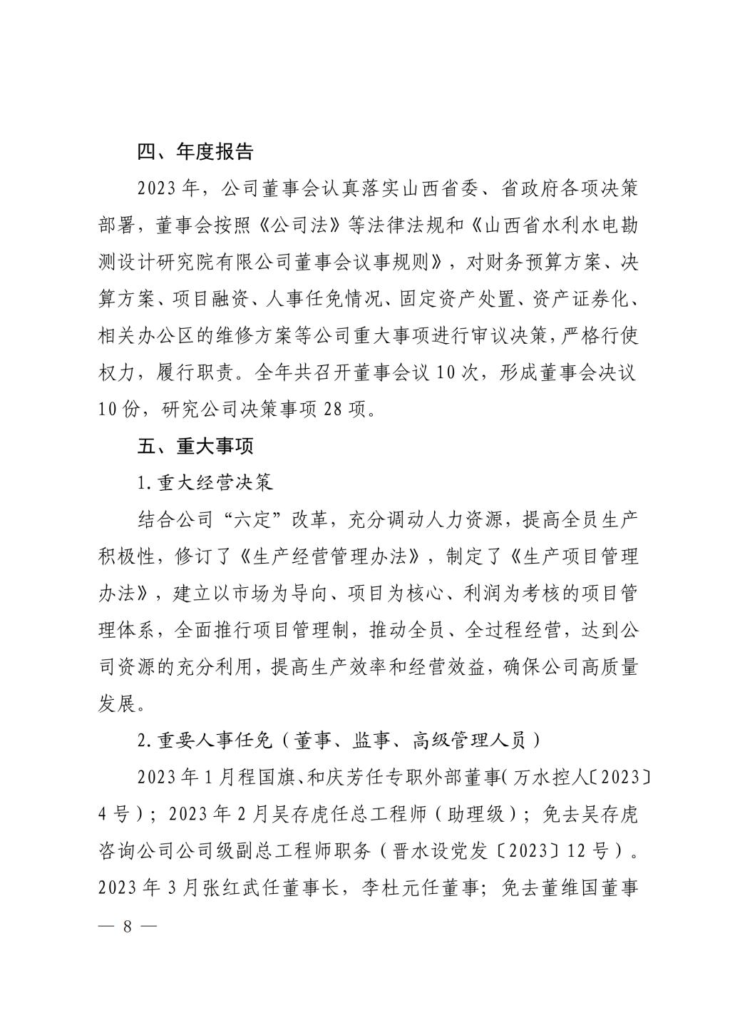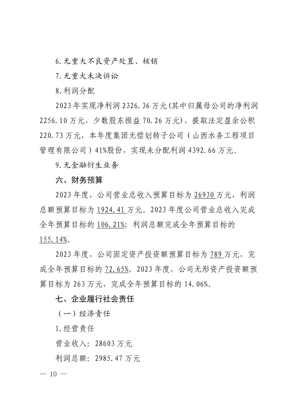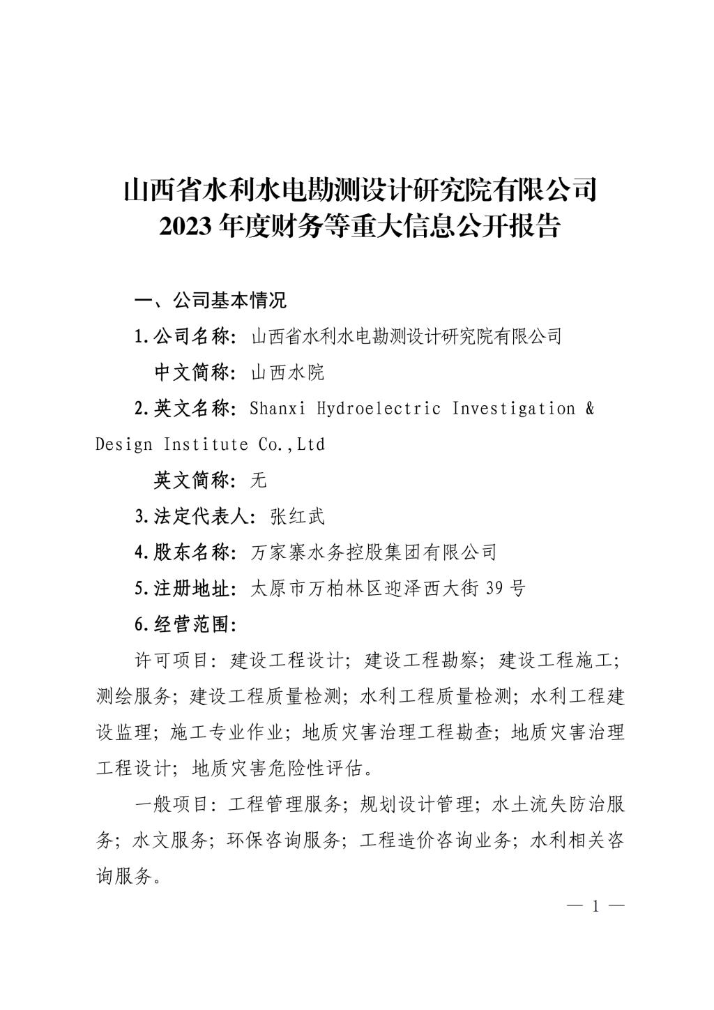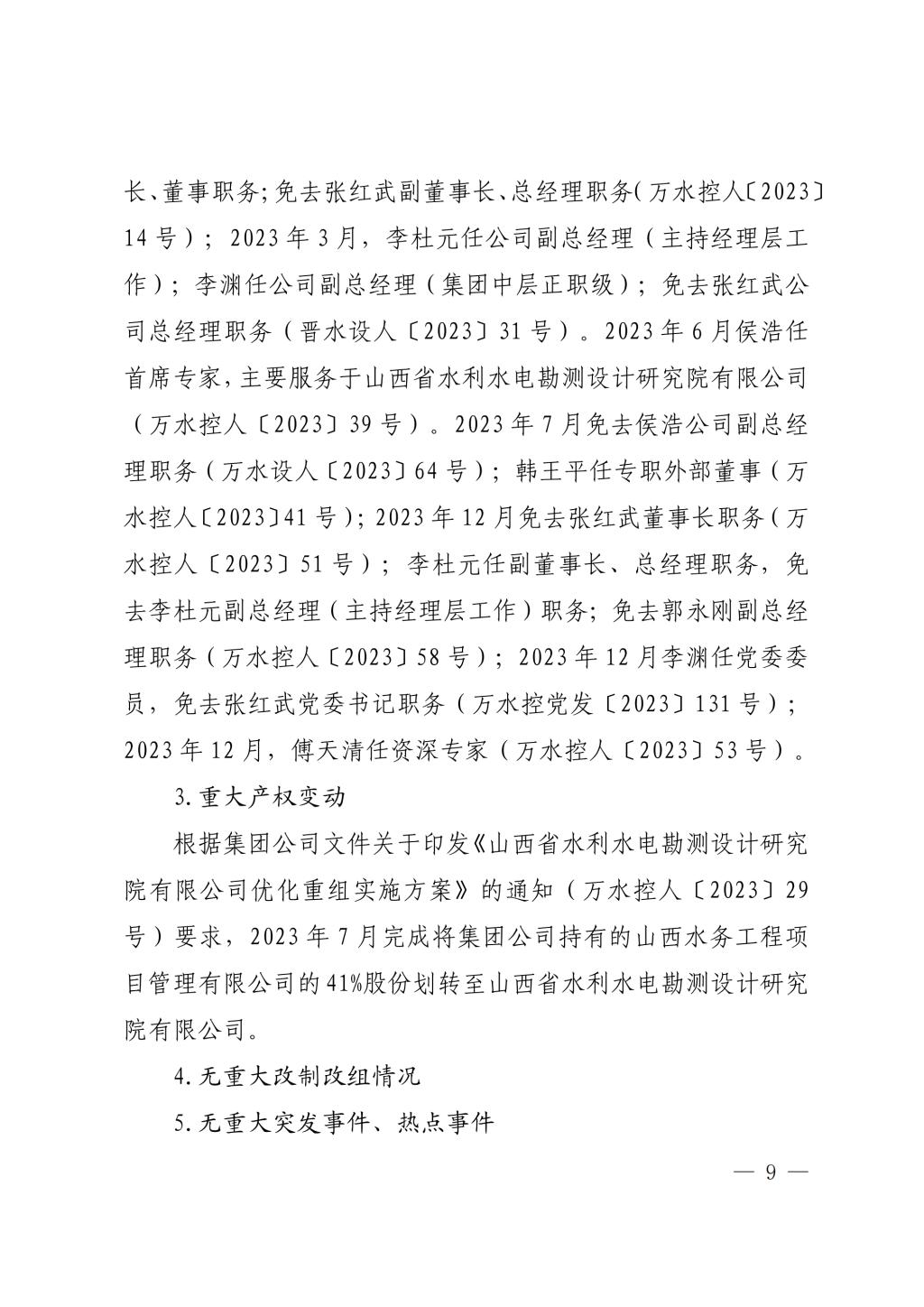 山西中部引黃水務集團有限公司2023年度重大信息公...
