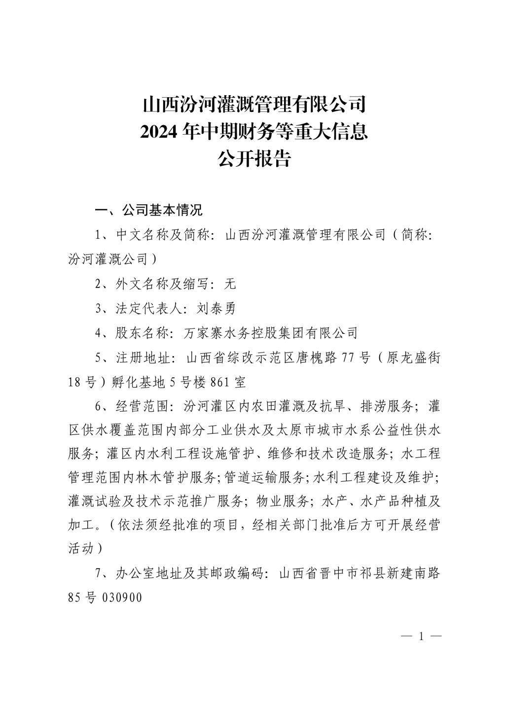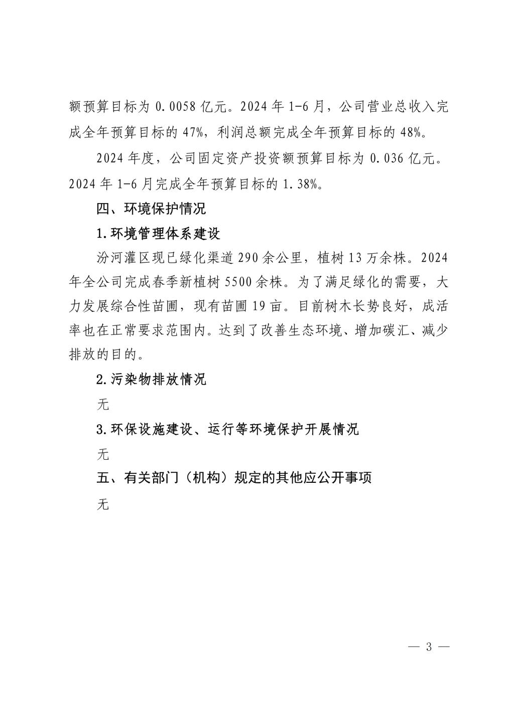 山西水務集團建設投資有限公司2024年中期信息公開...