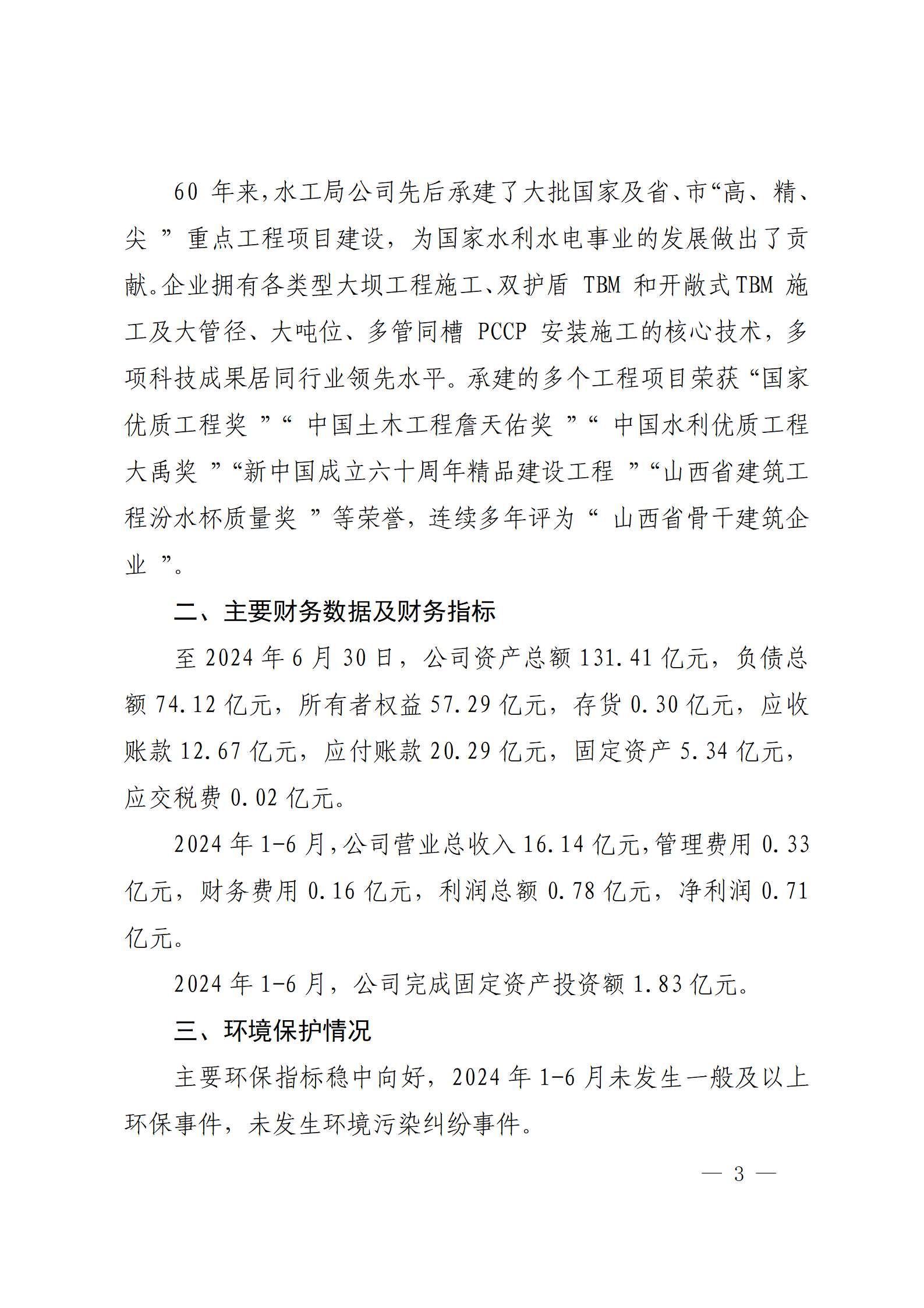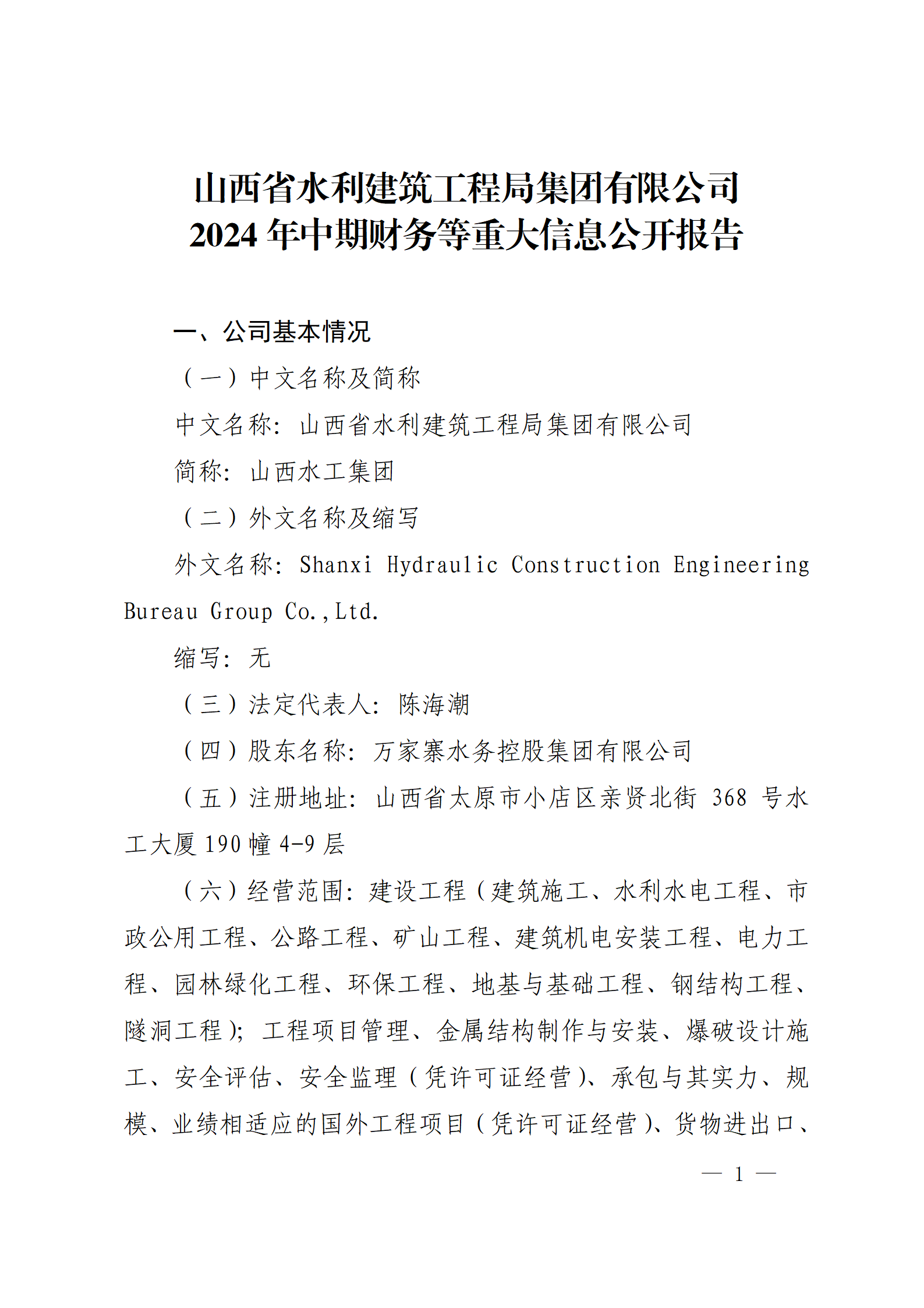 山西汾河流域管理有限公司2024年中期財務等重大信...