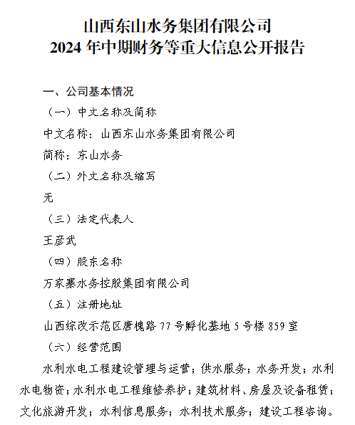 山西省水利建筑工程局集團有限公司2024年中期財務...