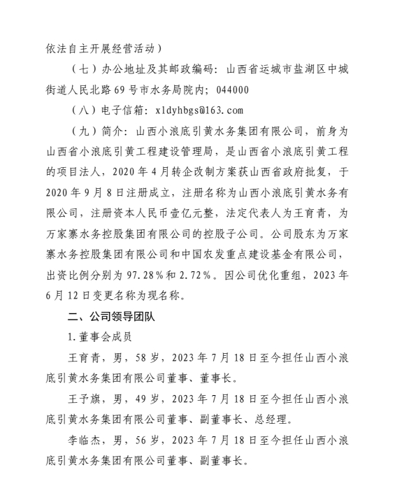 山西小浪底引黃水務集團有限公司2024年第三季度信...
