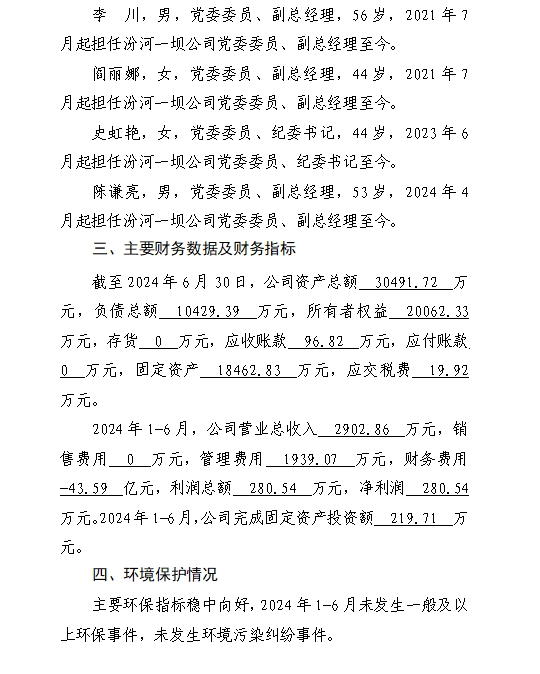 山西小浪底引黃水務集團有限公司2024年中期信息公...