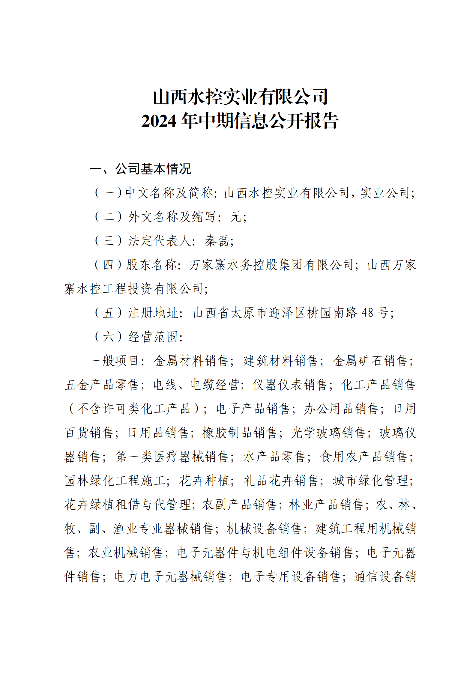 山西水控裝備制造(集團)有限公司2024年三季度信...