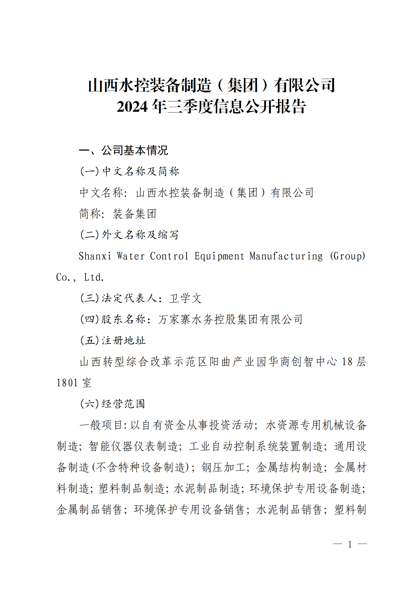 山西水控實業有限公司2024年中期信息公開報告