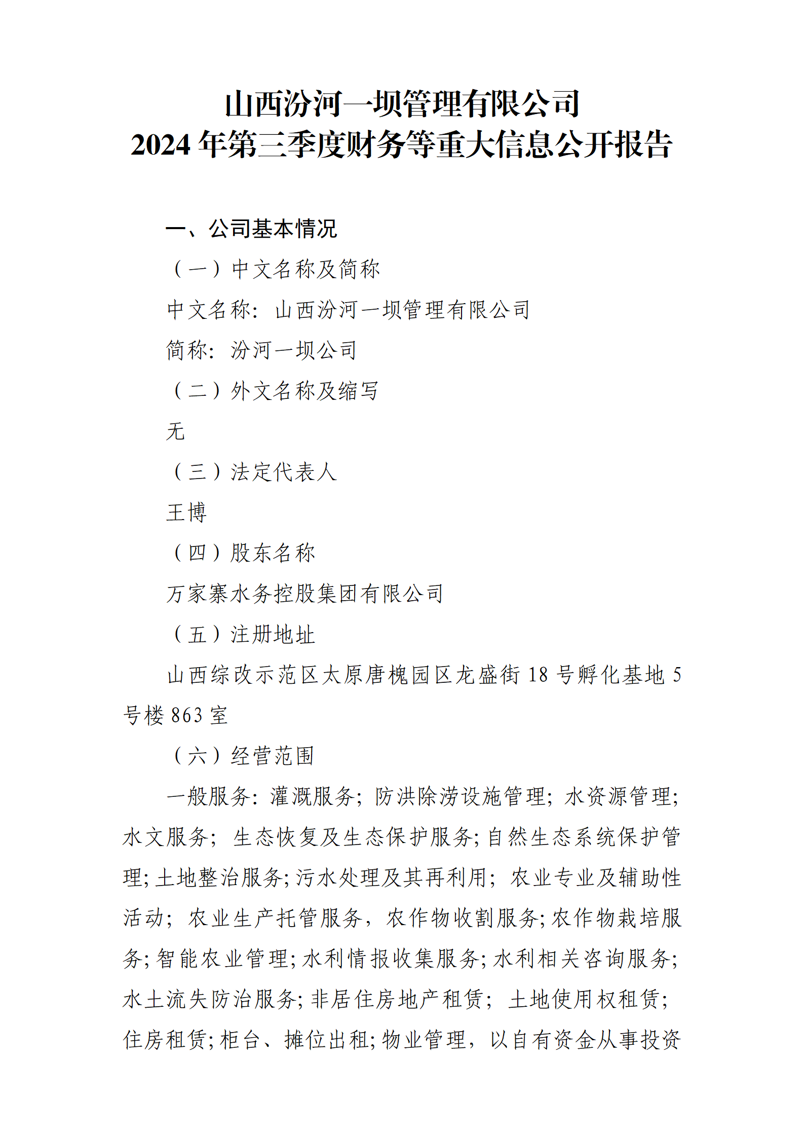 山西省水利建筑工程局集團有限公司2024年三季度財...