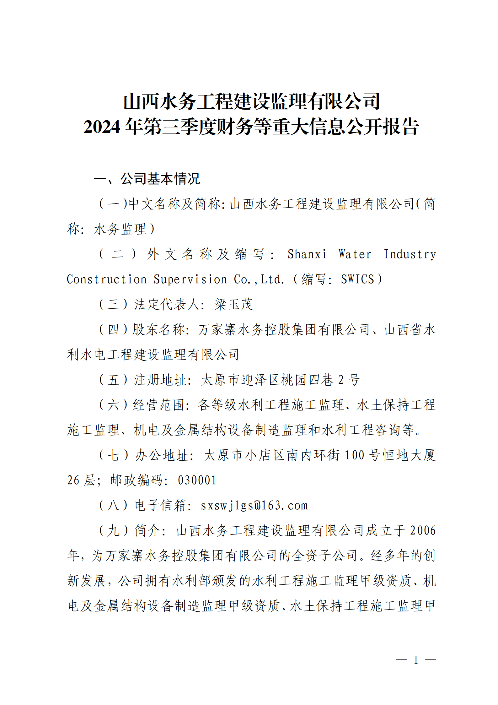 山西水控實(shí)業(yè)有限公司2024年第三季度信息公開報(bào)告