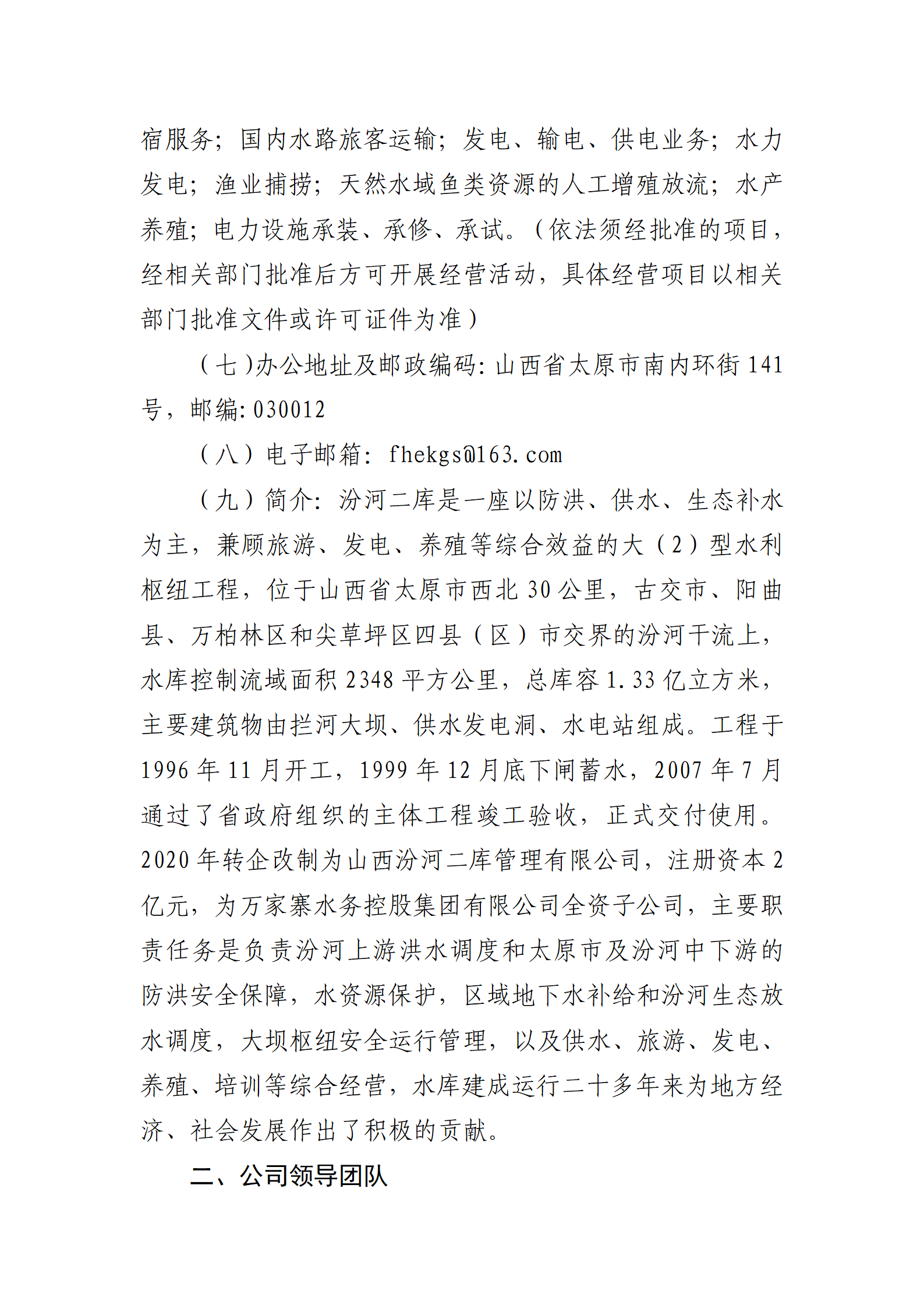 山西汾河二庫管理有限公司