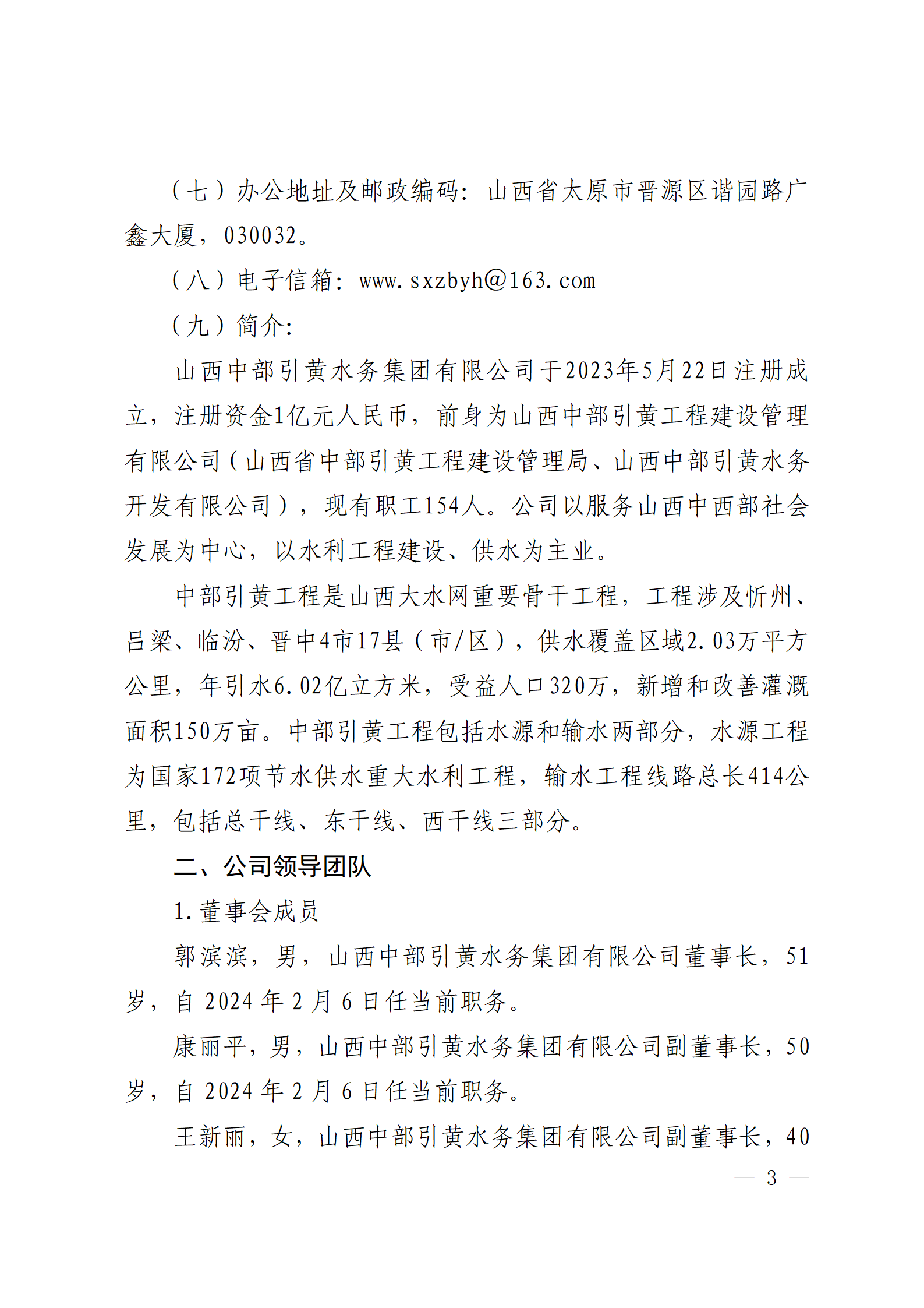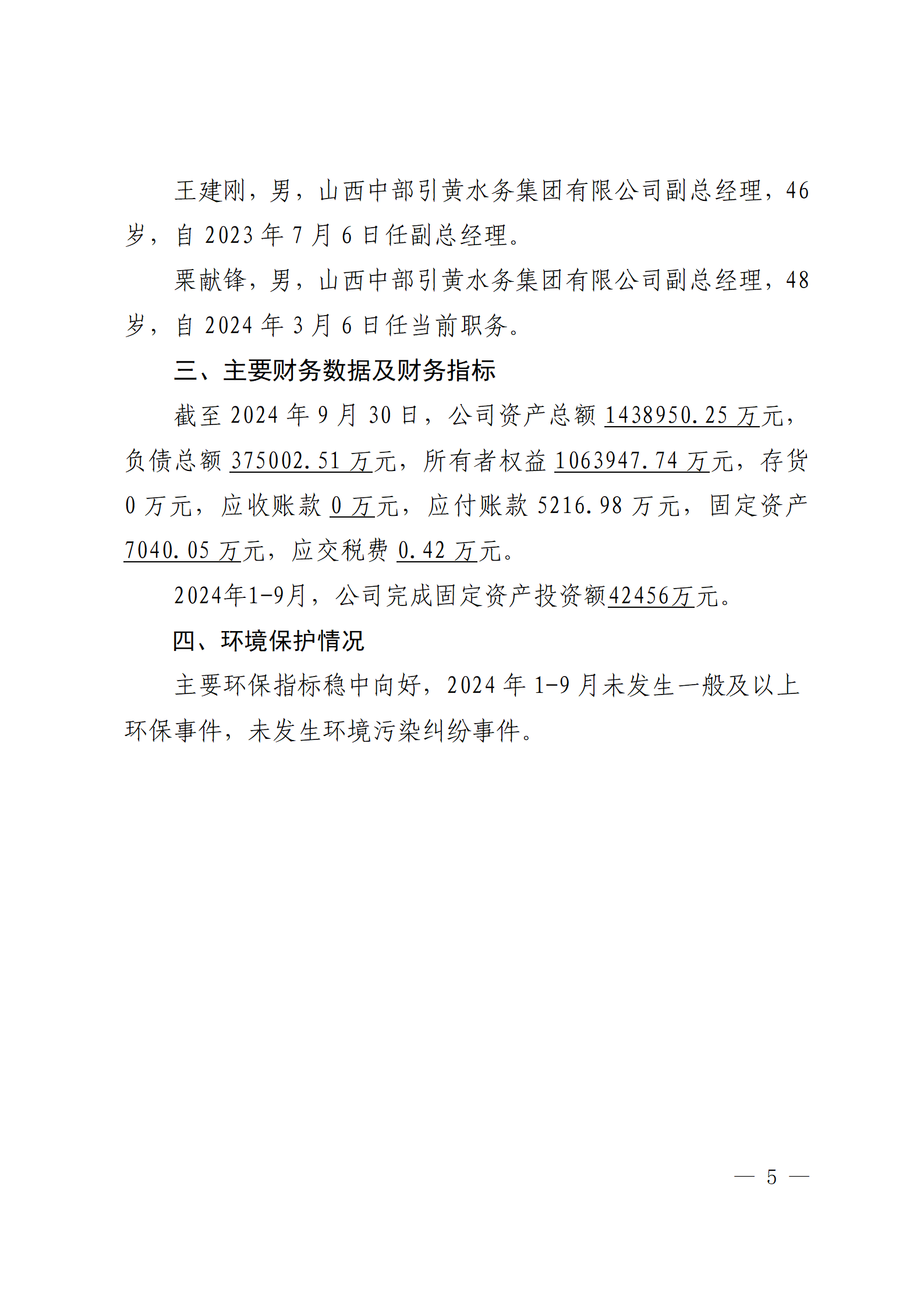 山西太忻滹沱河供水有限公司2024年第三季度重大信...