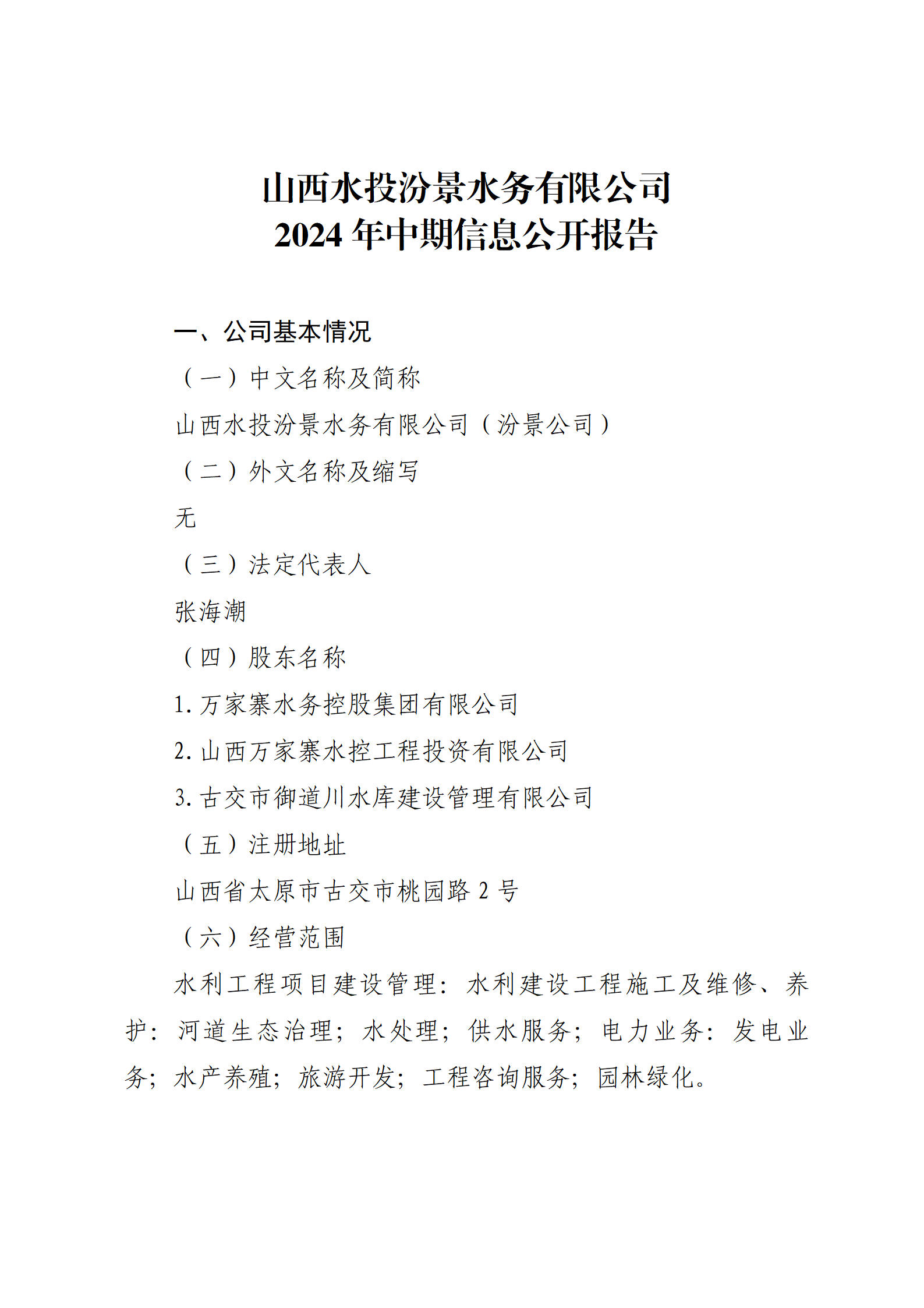 山西省水利水電工程建設監理有限公司2024年中期信...
