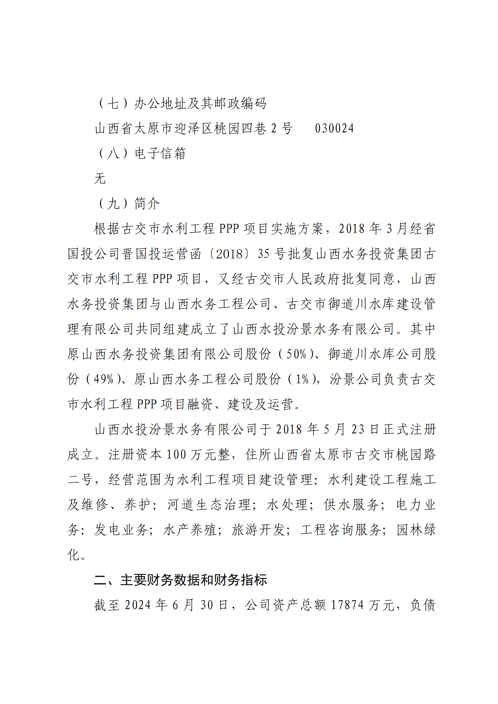 山西沁河水務集團有限公司2023年度財務等重大信息...
