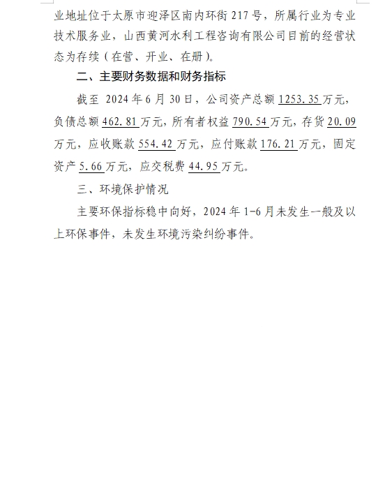 山西省水利水電工程建設監理有限公司2024年第三季...