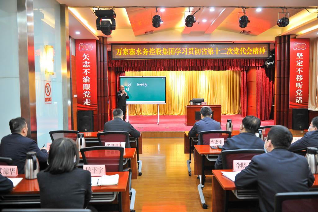 12月31日下午,萬家寨水控集團召開學習貫徹省第十二次黨代會精神宣講報告會,黨委書記、董事長馮志君作專題宣講。集團公司黨委班子成員彭柏青、蘭康杰、曹池、常建忠,總會計師、副總工程師、紀委副書記,集團機關中層正副職干部,在并子公司主要負責人,黨員及群眾代表、統戰對象代表、復轉軍人代表、團員青年代表聆聽宣講報告。